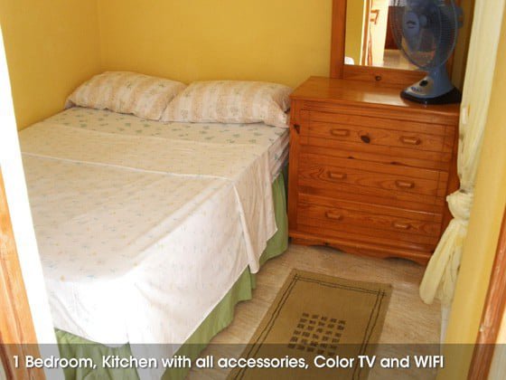 AIRE Y MAR has also one private small Apartment with one bedroom, air conditioning, television, full Kitchen with all accessories, double size bed and complete bathroom. This small Apartment has a private patio with a superb view of the Marina and the Bay of Samana.
